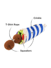 La peluche pour chienen forme de Falafel de Pet Play couine légèrement pour stimuler votre chien pendant le jeu. Le papier sonoreet lacorde stimuleront votre chien pour des heures et des heures.